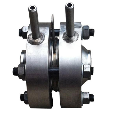 4.取壓法蘭與管道焊接前,應(yīng)先將管道上的取壓孔鉆好,其直徑與取壓法蘭上的取壓孔徑相同,焊接時(shí)取壓法蘭上的取壓孔與管道上的取壓孔對(duì)準(zhǔn)。