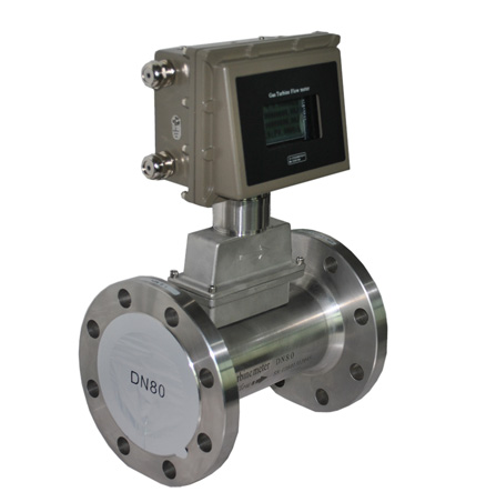 當(dāng)流體流入流量計時,在進(jìn)氣口專用一體化整流器的作用下可以整流并加速,由于渦輪葉片與流體流向成一定角度,此時渦輪產(chǎn)生轉(zhuǎn)動力矩,在克服摩擦力矩和流體阻力矩后,渦輪開始旋轉(zhuǎn)。在一定的流量范圍內(nèi),渦輪旋轉(zhuǎn)的角速度與流體體積流量成正比。根據(jù)電磁感應(yīng)原理,利用磁敏傳感器從同軸轉(zhuǎn)動的信號輪上感應(yīng)出與流體體積流量成正比的脈沖信號,該信號經(jīng)放大、濾波、整形后與溫度、壓力傳感器信號一起進(jìn)入智能流量積算儀的微處理單元進(jìn)行運算處理,并把氣體的體積流量和總量直接顯示于LCD屏上。